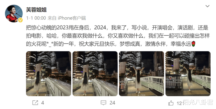 她说,2024年我方念念要写演义,爱演唱会,演话剧,甚而是拍电影。
